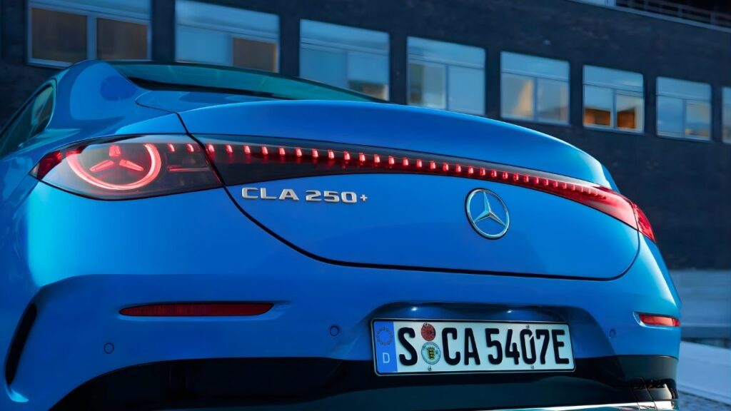 The all-electric variant of the CLA features a futuristic design, based on Mercedes’ “Sensual Purity” philosophy. Like other EVs, its front grille is closed; however, the illuminated star patterns embedded within it lend it a modern aesthetic, while the lit-up three-pointed star logo highlights its brand presence.