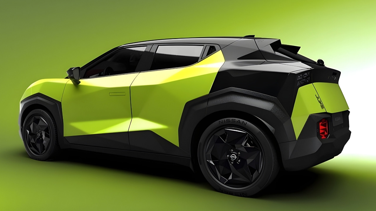 The showcase of the third-generation Juke has revealed all about its exterior and design. Up front it features sharp geometric styling that gives it a cyberpunk look, split LED headlights in a triangular shape, a closed-off grill for modern EV styling, and black cladding around the bumper to add the feel of a rugged SUV.